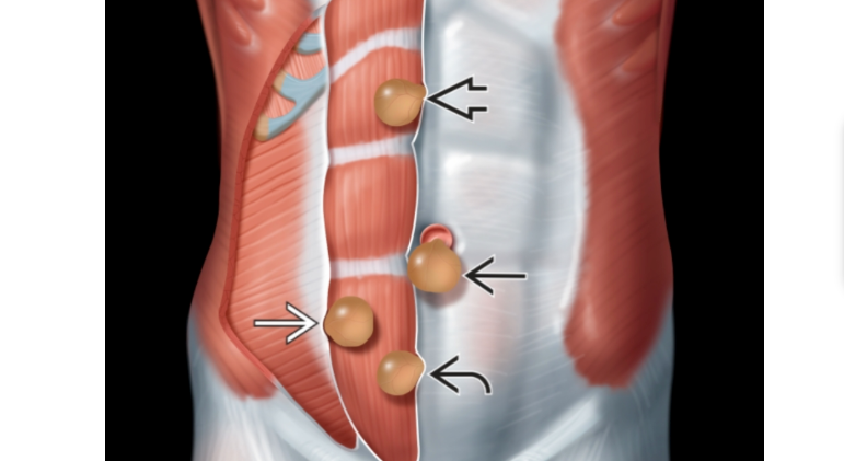 Bauchwandhernien sind Brüche der Bauchwand, bei denen sich Bauchinhalt (z. B. Fettgewebe oder Darm) durch eine angeborene oder erworbene Schwachstelle der Bauchwand vorwölbt. Dies zeigt sich häufig als weiche Vorwölbung, die beim Stehen, Husten oder Pressen deutlicher wird und im Liegen oft wieder verschwindet. Je nach Größe kann eine Bauchwandhernie ein Druckgefühl oder Schmerzen verursachen.